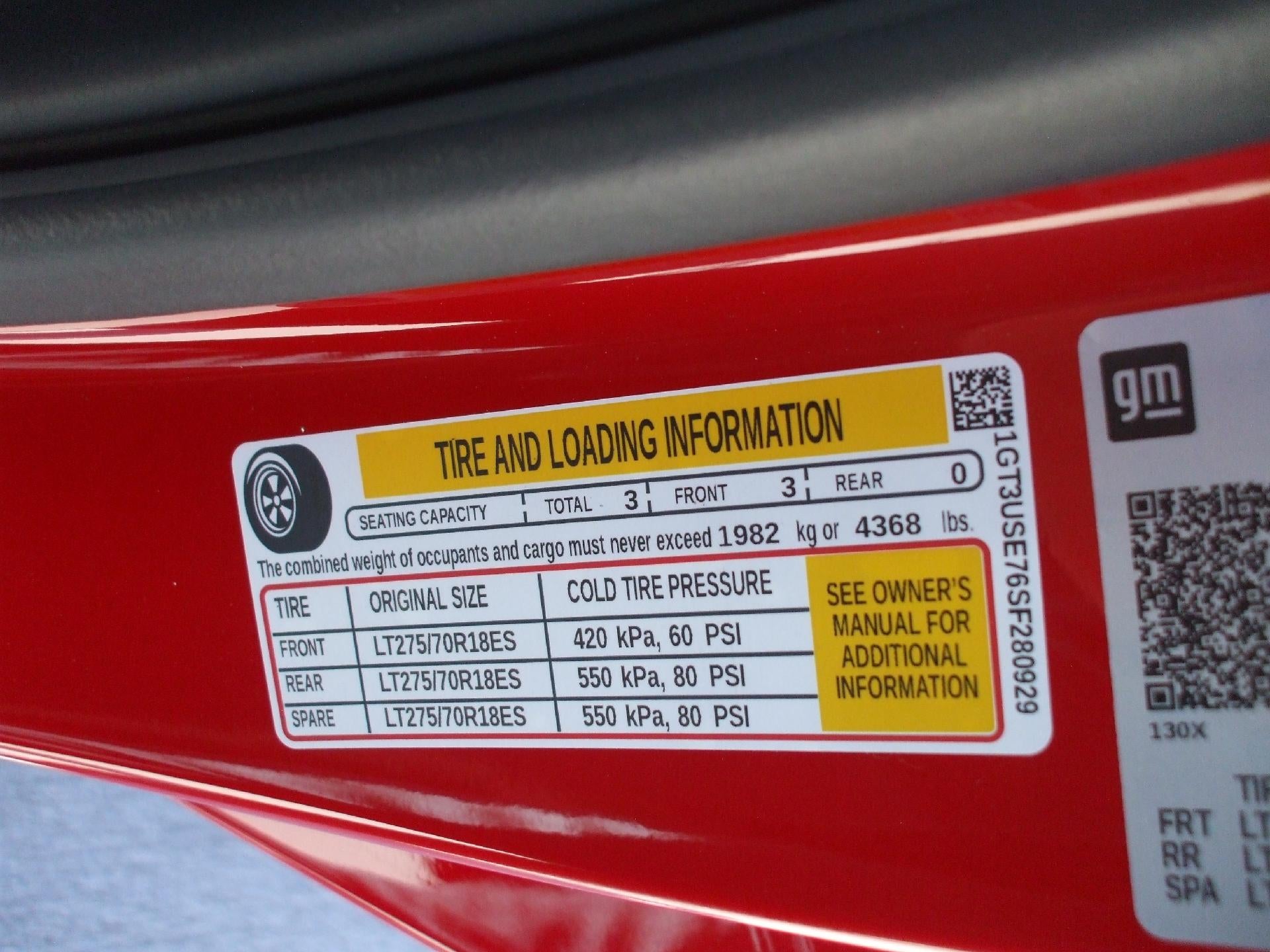- 18" LT275/70R18 all-terrain, blackwall spare tire